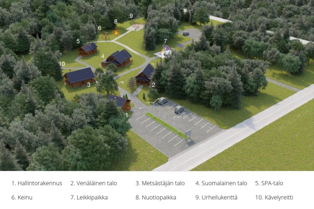 Missä on nuotiopaikka ja leikkikenttä, ja miten pääsee metsäreitin alkuun? Katso tiedot kartasta!